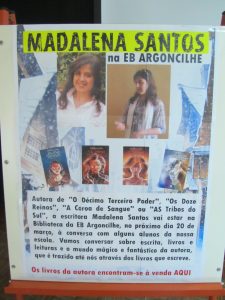 Voltei aos encontros nas escolas, o que muito me entusiasma. Hoje de manhã estive em Argoncilhe (Santa Maria da Feira). Fui muito bem recebida! Depois da avalanche de perguntas – são estes momentos que motivam a continuar – , ofereceram-me uns pãezinhos fabulosos! No próximo mês será a vez de Almeirim e Tavira… havendo certamente outras datas e locais a serem anunciados nos próximos tempos.